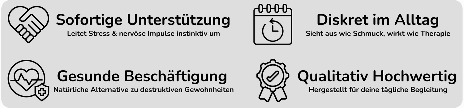 Bestätigten, dass die Calm Ringe ihnen geholfen haben, nervöse Gewohnheiten wie Nägelkauen und Hautzupfen nachhaltig zu kontrollieren.