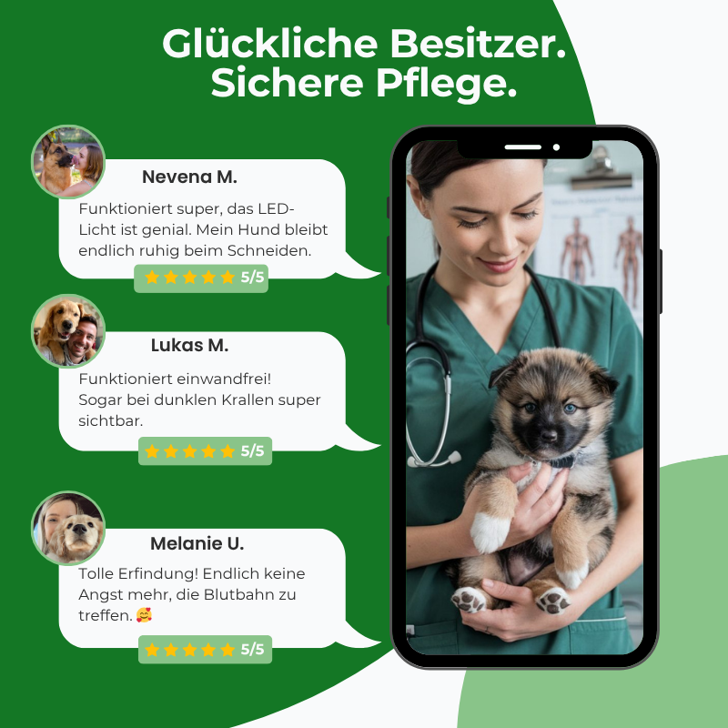 Das ist völlig normal, viele Tiere müssen sich erst an das Gefühl gewöhnen. Der Safe Knipser™ macht den Einstieg leicht: leise, vibrationsarm und sanft, sodass sich dein Tier mit jeder Anwendung wohler fühlt. Mit etwas Ruhe und Geduld wird die Pflege zum Kinderspiel.