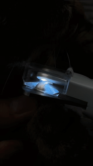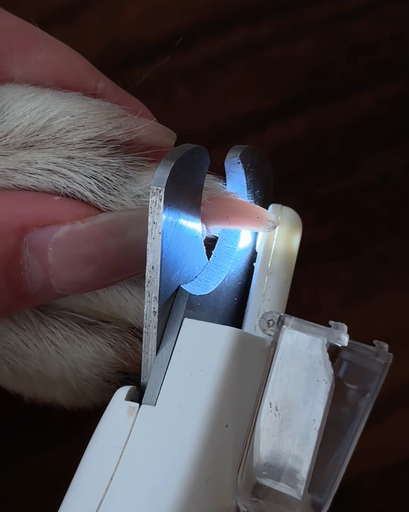 LED-Licht verwenden: Beleuchte die Kralle immer mit dem LED-Licht, um sicherzustellen, dass du das Blutgefäss immer im Blick hast und nie zu weit schneidest.