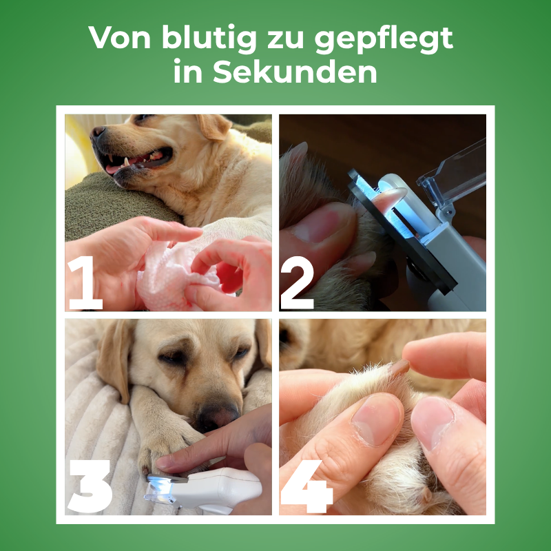 Ja, die Feile arbeitet sanft, aber effektiv und kann die Blutlinie beleuchten, um versehentliche Verletzungen zu vermeiden. Nach dem Schneiden rundest du die Nägel schmerzfrei ab, damit dein Haustier dich und deine Möbel nicht mehr zerkratzt.